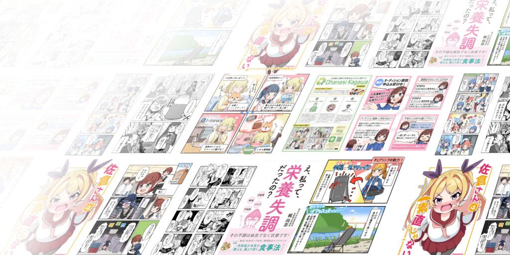 マンガフルワークスでは、PR・広告・求人採用から自治体系(公益法人など)案件まで幅広いご依頼に対応してきました。蓄積したノウハウをベースに目的に合った「読ませるマンガ」をご提案します。